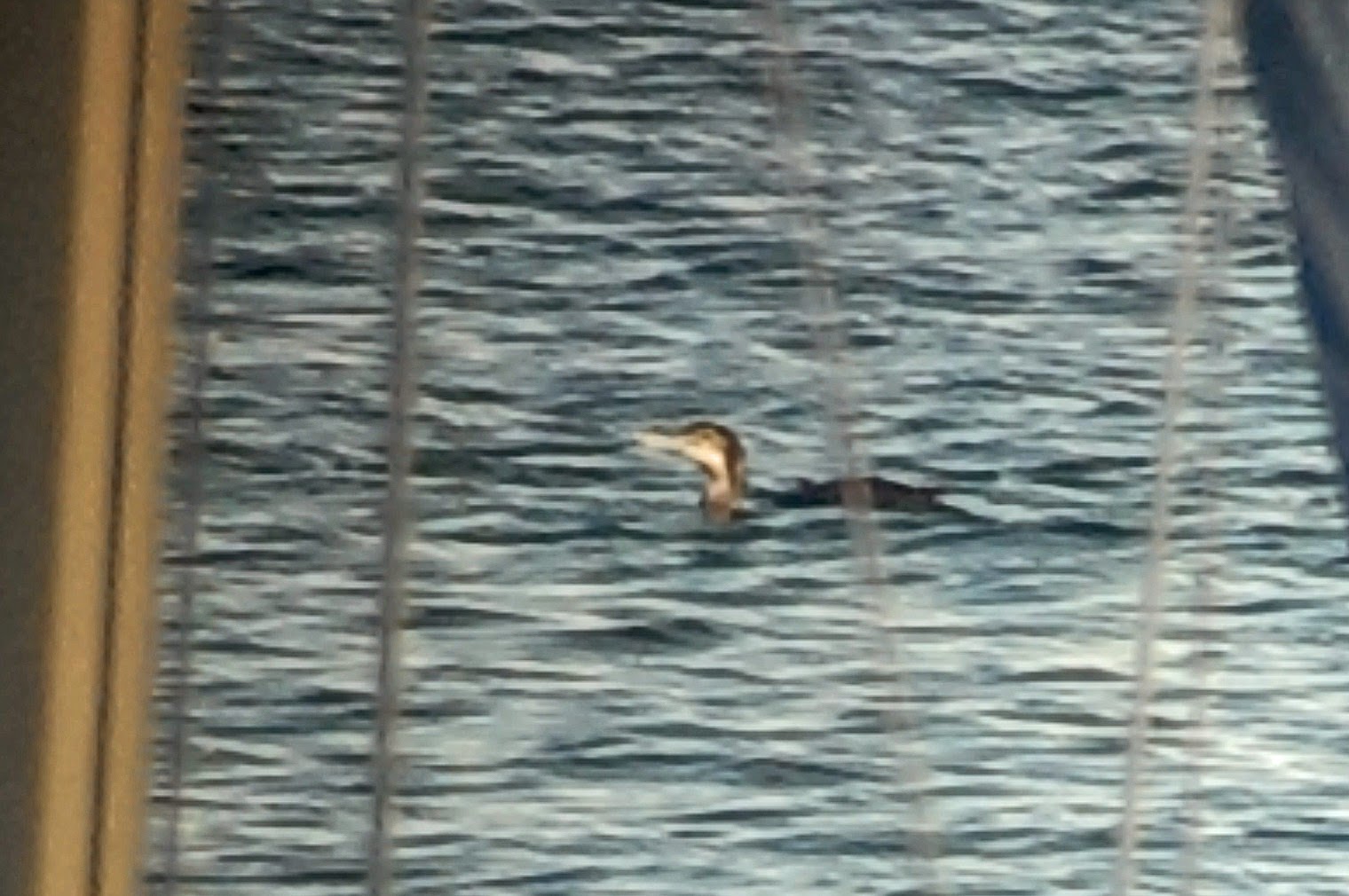 several Shags, 4 Little Grebes a Grey Heron and a Great-northern Diver. Looking